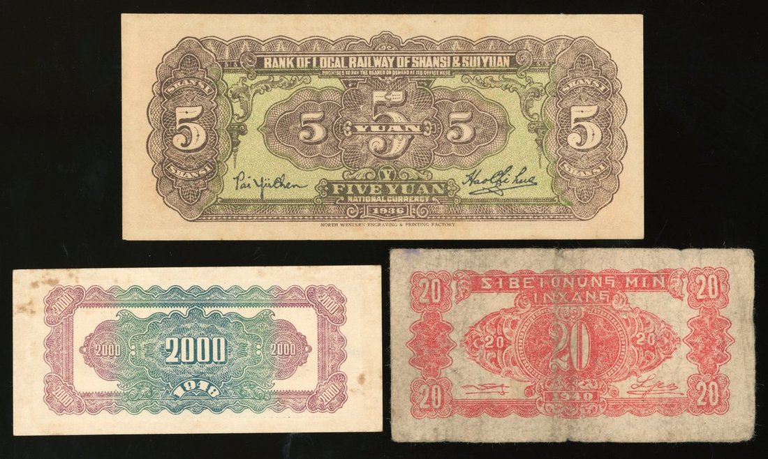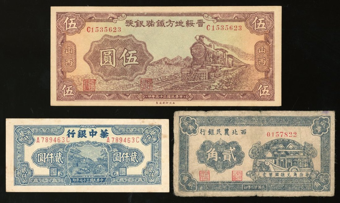 中國紙鈔一組3枚,包括