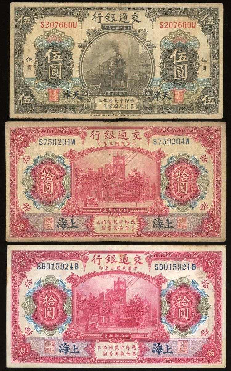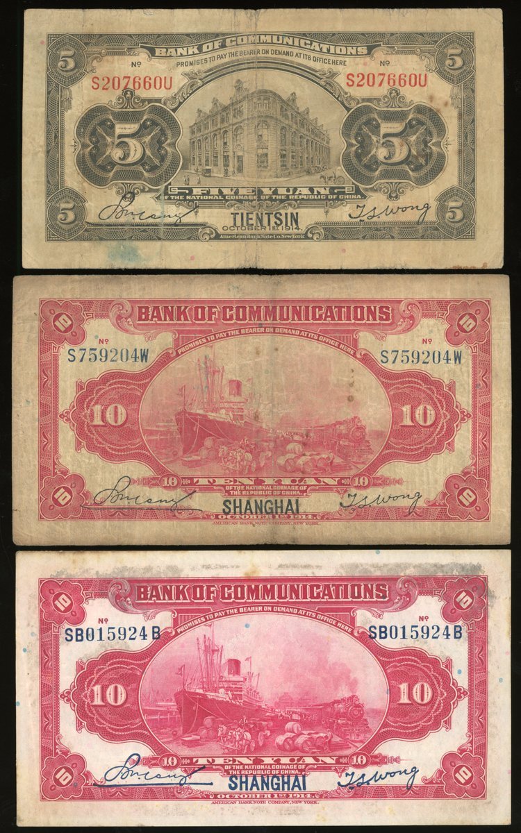 China Banknotes, a group of 7x, including, -Bank of Communications, 5 yuan, 10 yuan (2), Year 3, 10 yuan, Year 24,