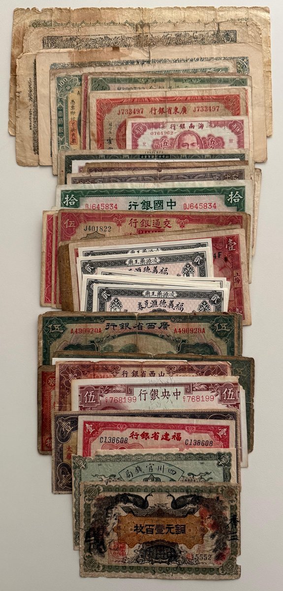 China, Mixed lot, a group of approximately 61 notes, mixed with different banks and denominations, all Republican era issues, together with 9 early issue hell money,