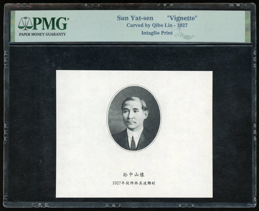 China, Vignette of Sun Yat Sen, engraved by Qibo Lin, 1927, encapsulated by PMG with no grade