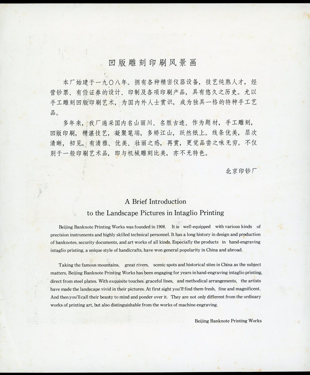 China, a group of intaglio printings by Beijing Banknote Printing Works and a watermark of Sun Yat Sen, intaglio printings include Fairy Peak of Wu Yi Mountain and 2x of Zhou En Lai,
