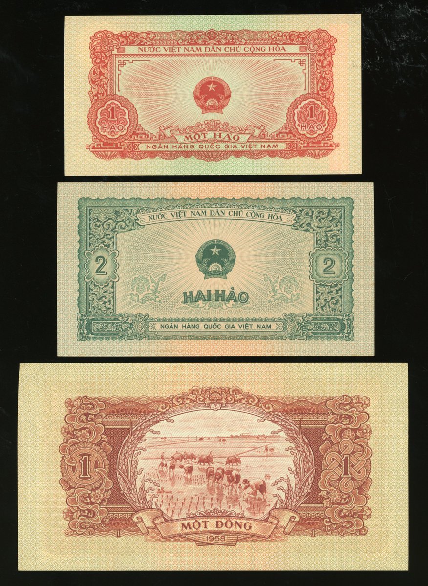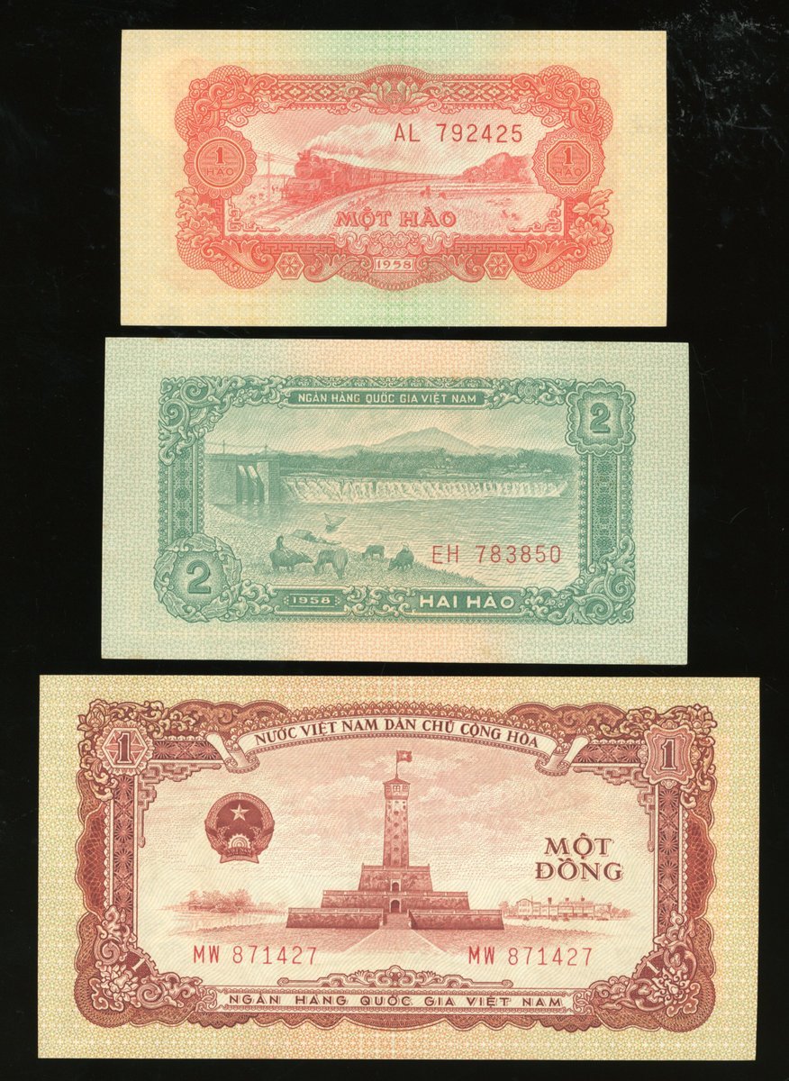 Ngân Hàng Quoc Gia Viet Nam, North Vietnam, a group of 6, including: 1 hao, 2 hao, 1 dong, 2 dong, 5 dong and 10 dong, 1958, serial numbers AL 792425, EH 783850, MW 871427, TZ 326737, TD 417876 and NQ 283062;