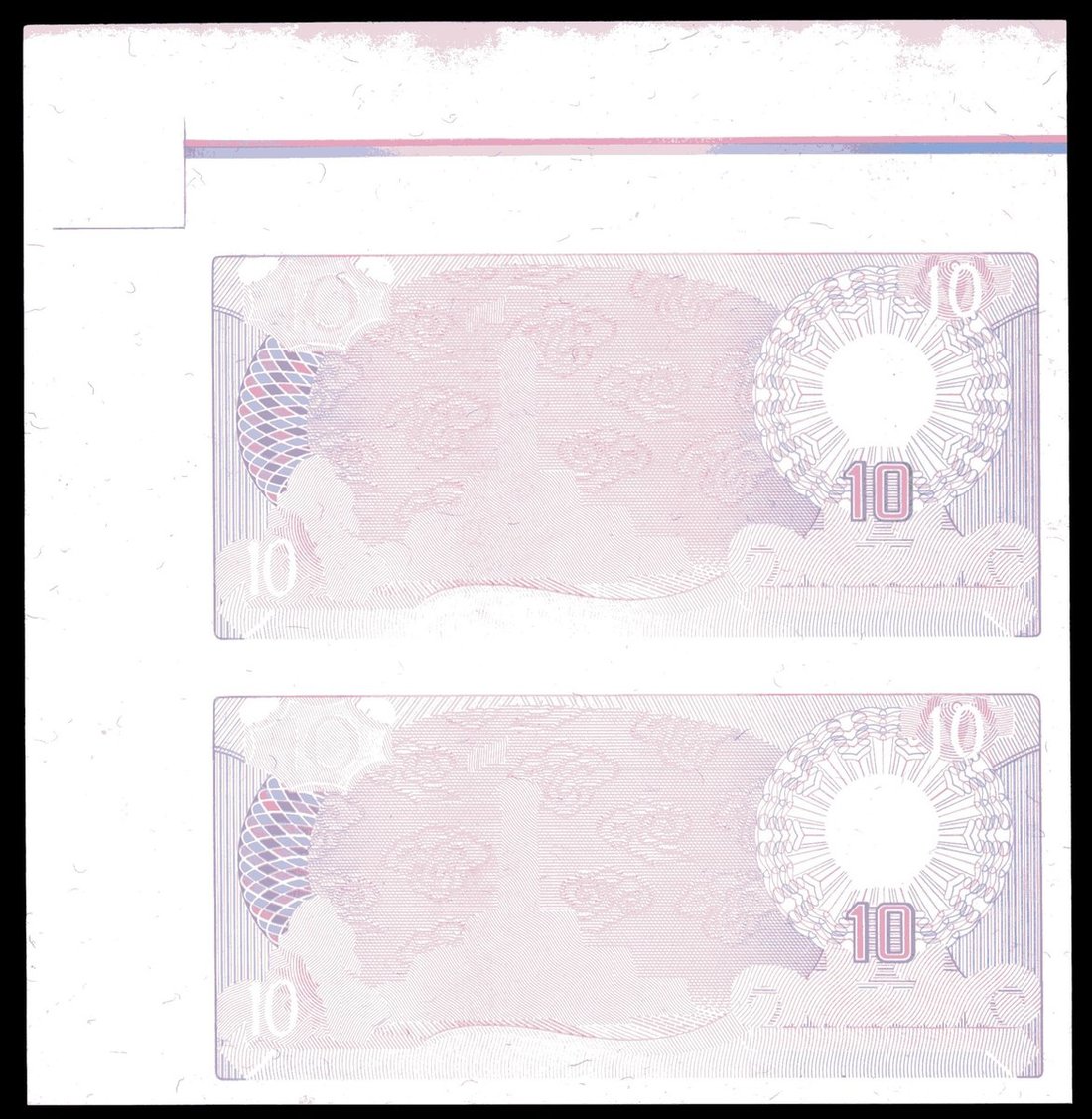 State Bank of Vietnam, a group of uncut sheet of two progressive proofs 10 dong (2), 1985, all uniface on watermark paper, with two different underprint designs,