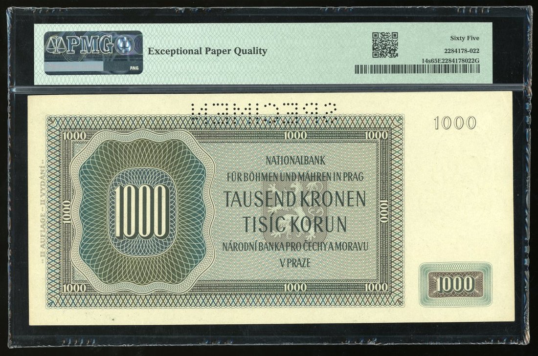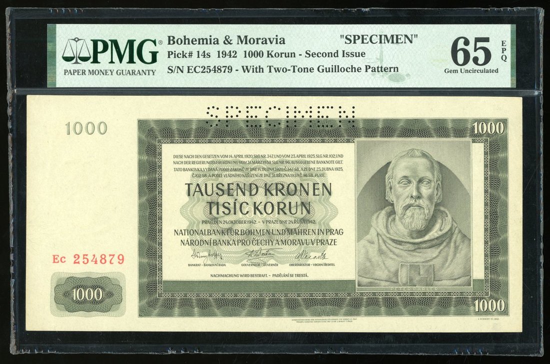 -Bohemia & Moravia, specimen 100 korun, 1942, PMG 65EPQ,