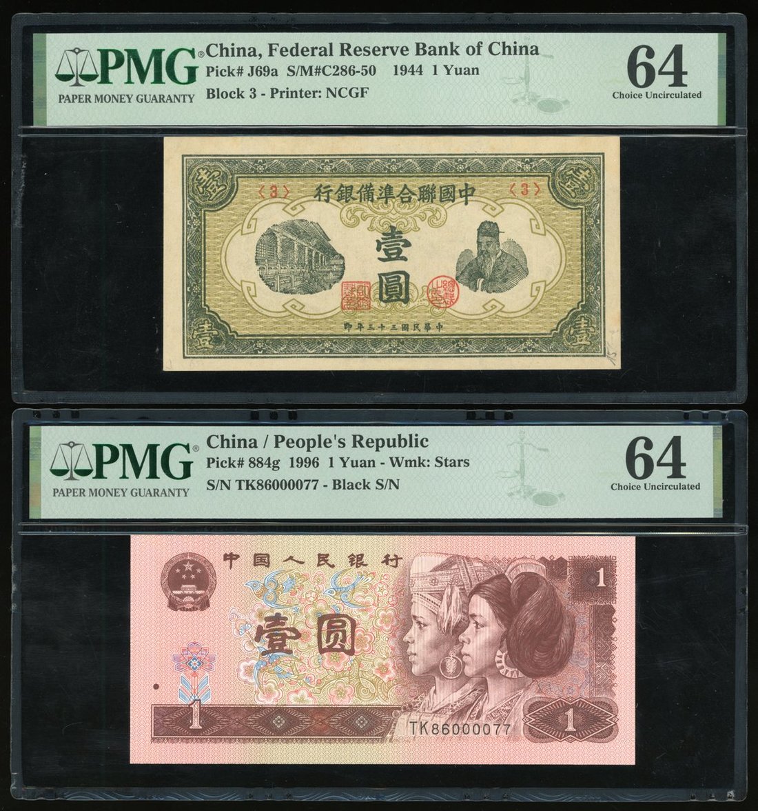 -Federal Reserve Bank of China, 1 yuan, 1944, PMG 64, annotation