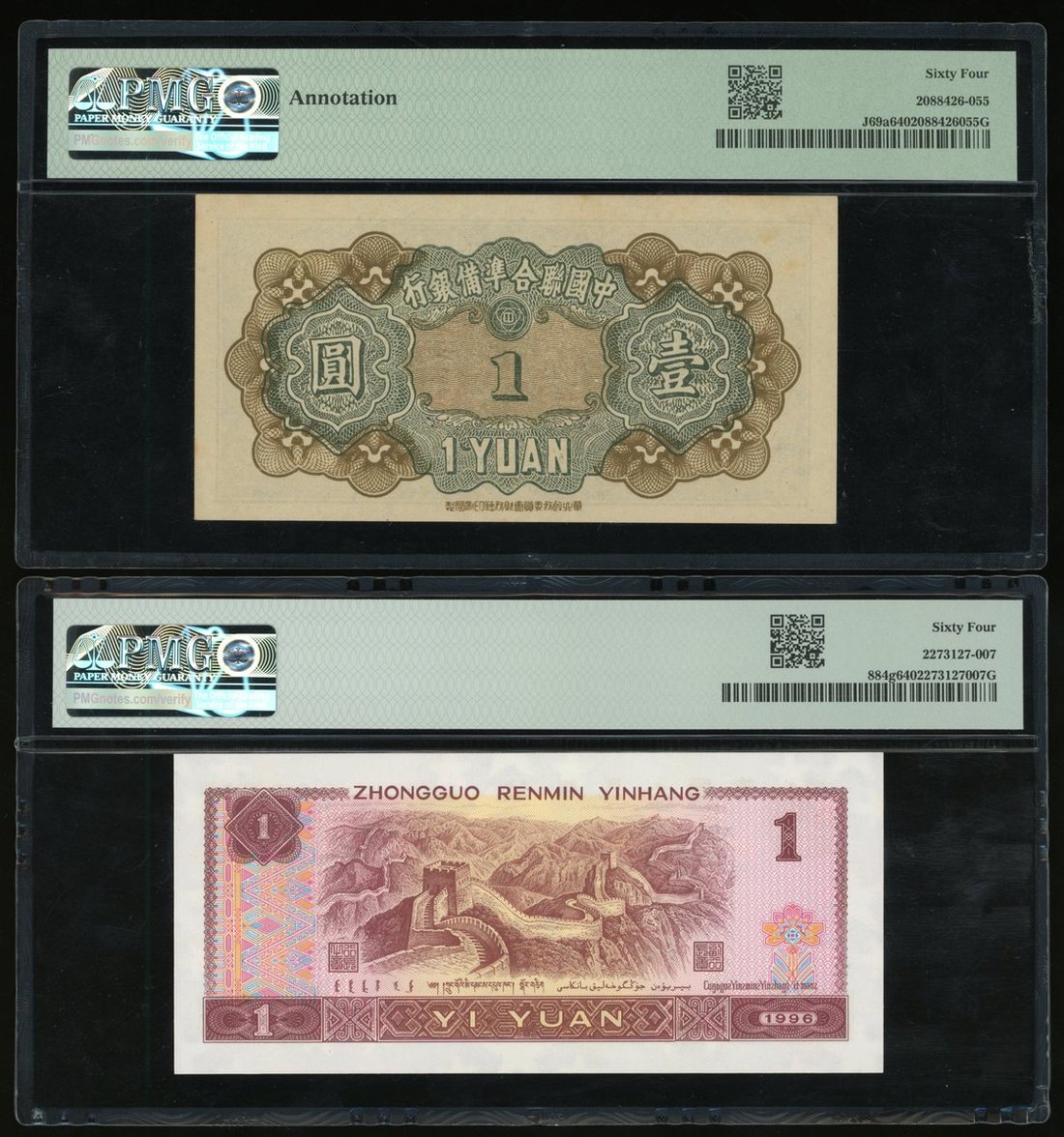 -China, 1 yuan, 1996, PMG 64,
