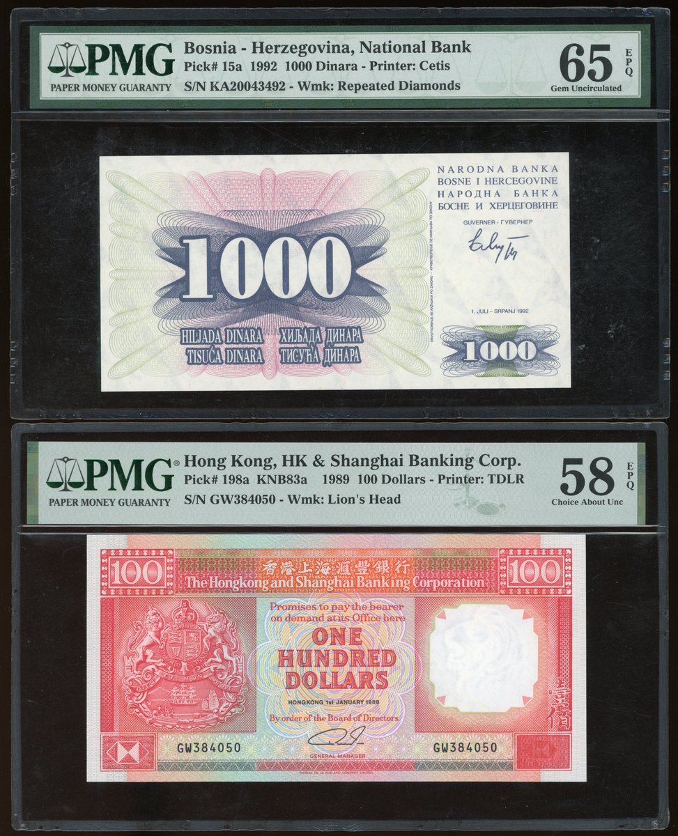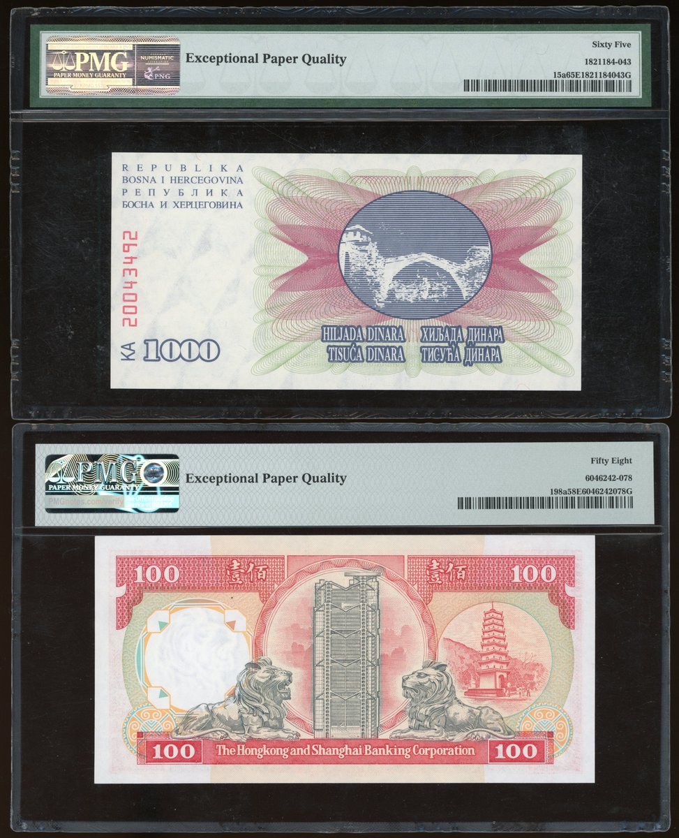 World Banknotes, a group of 3x, including, -Bosnia-Herzegovina, 1000 dinara, 1992, PMG 65EPQ,