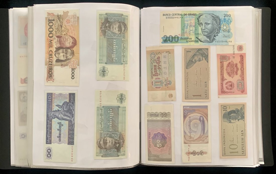 World Banknotes Mixed Lot, am album of banknotes, mixed condition, please see the video attached below the description. Viewing recommended, sold as seen, no returns.