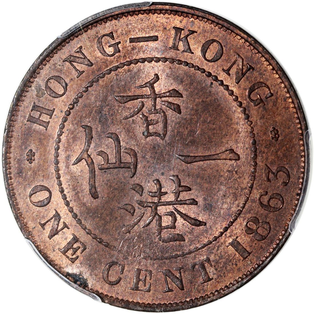 Hong Kong, [PCGS MS62RB] bronze 1 cent, 1863, Victoria on obverse, Cert.# 27850874