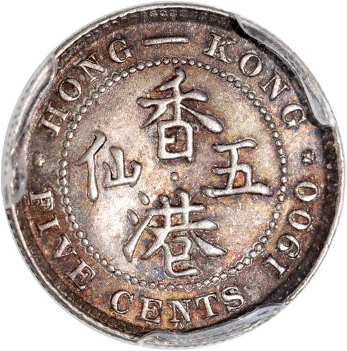 1900年香港維多利亞五仙,包漿均勻,PCGS MS62