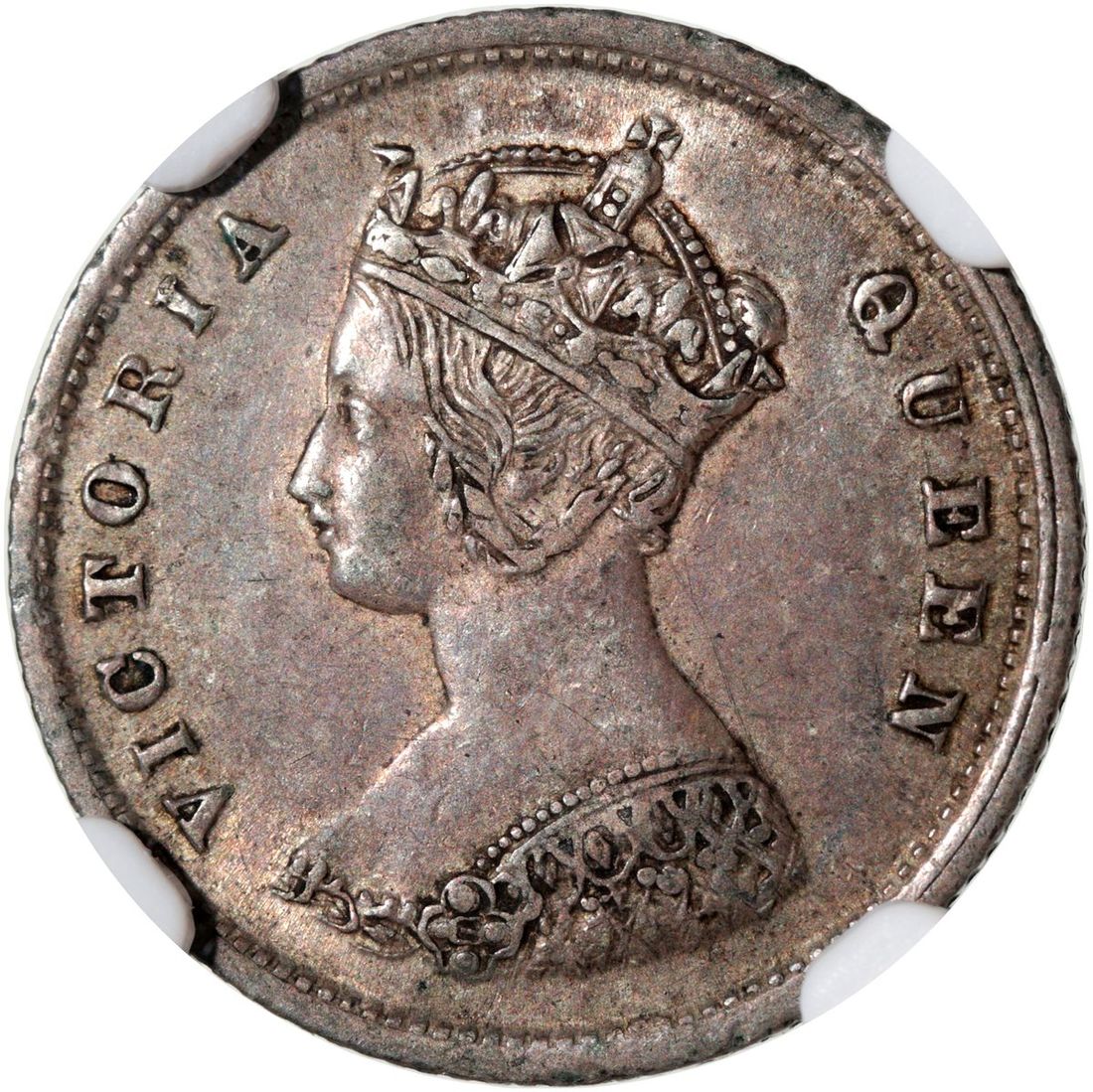 1866年香港維多利亞一毫,十珠版,NGC AU50,皇家造幣廠版別