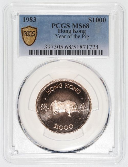 1983年香港豬年紀念金幣壹仟圓,PCGS MS68