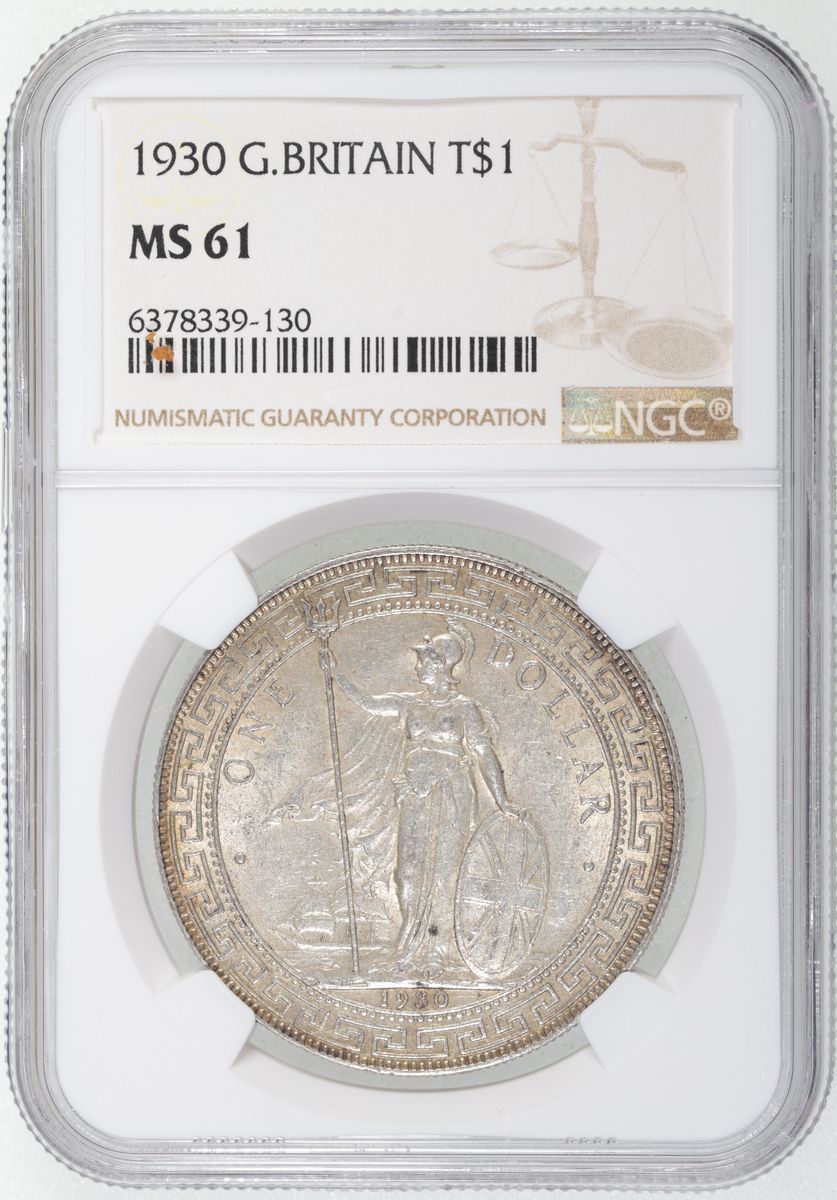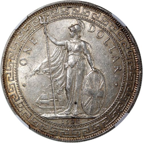 1930年英國貿易銀圓,皇家鑄幣廠鑄,NGC MS61,均勻黃調包漿