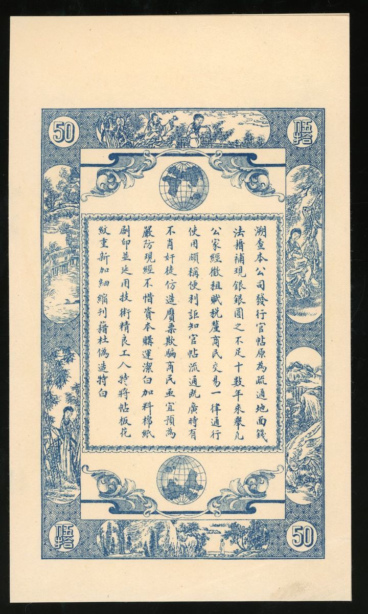 Kwang Sing Company, China, 50 tiao, 1922, Heilungchiang, vertical format, green and red floral border, (Pick S1590b), AU, stamp cancelled, folds at the corner
