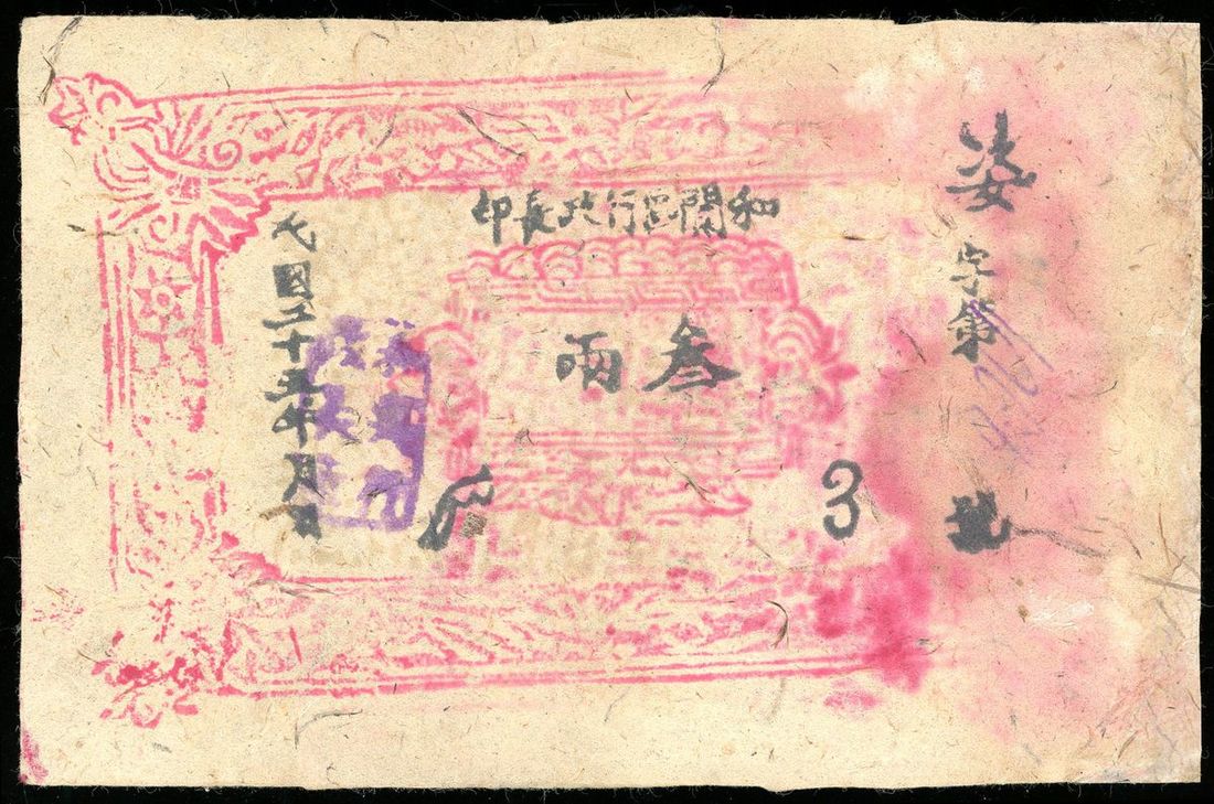 Khotan District Administration, Sinkiang Province, China, 3 taels, Year 25 (1936), serial number 1968, (Pick S1737), Extremely Fine for type