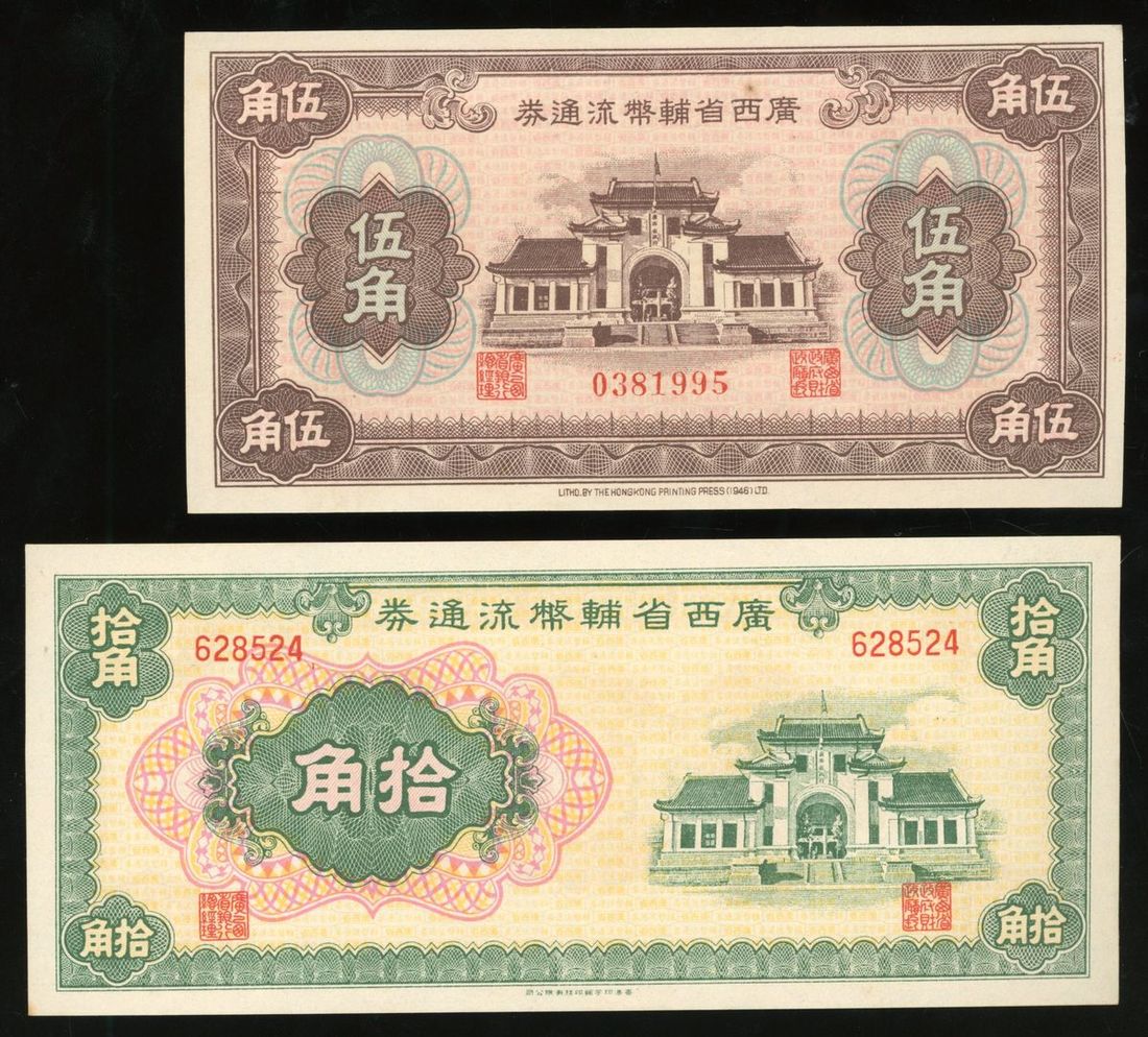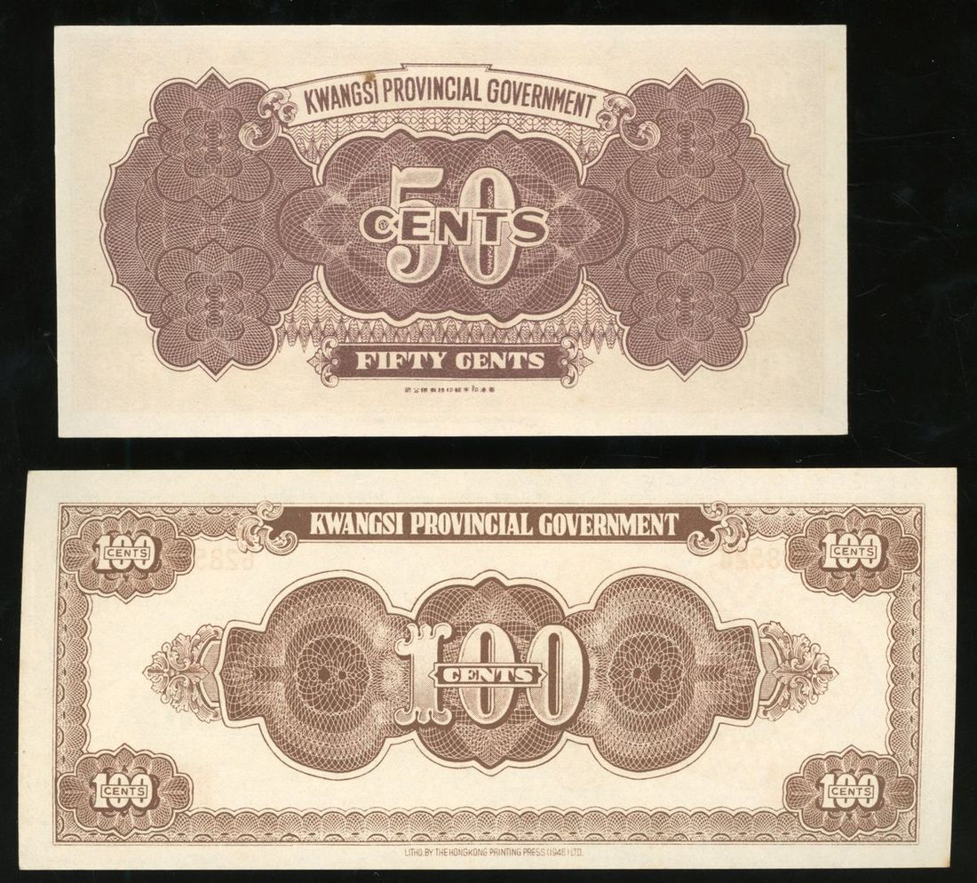 Kwangsi Provincial Government, China, a pair, 1949, including 50 and 100 cents, printed by HongKong Printing Press