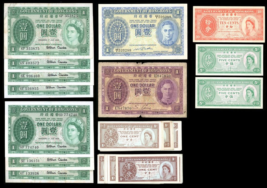 Government of HongKong, a group of 37x, including George $1 (2), ND (1939, 1940), Victoria $1 (7), 1958-59, 1 cent (25), 5 cents (2), 10 cents (1),