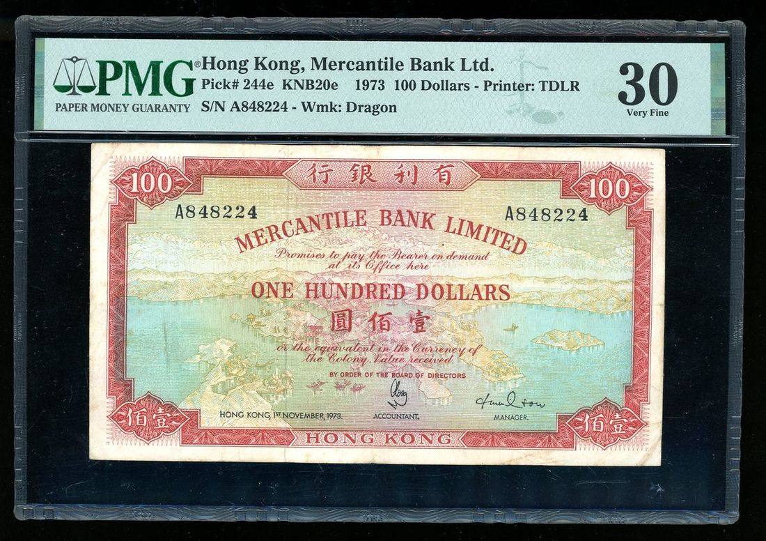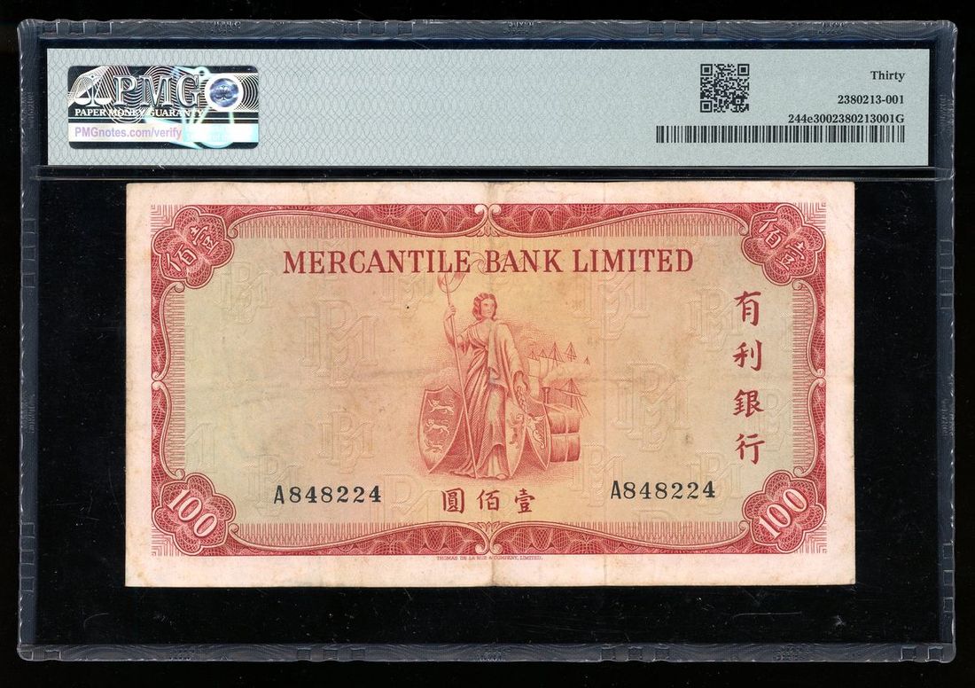 Mercantile Bank Limited, $100, 1.11.1973, serial number A 848224, (Pick 244e), PMG 30 Very Fine