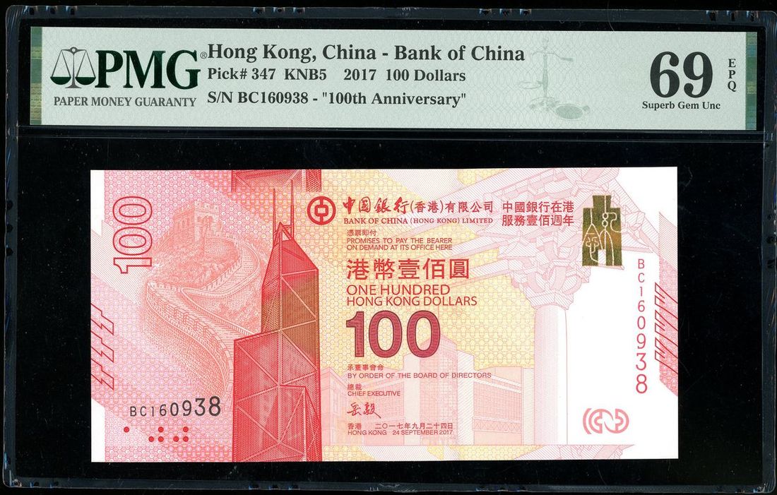 Bank of China, $100, 24.9.2017, 100th Anniversary of the Bank in Hong Kong, serial number BC160938, (Pick 347)