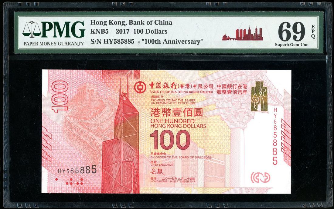 Bank of China, $100, 24.9.2017, 100th Anniversary of the Bank in Hong Kong, serial number HY585885, (Pick 347)