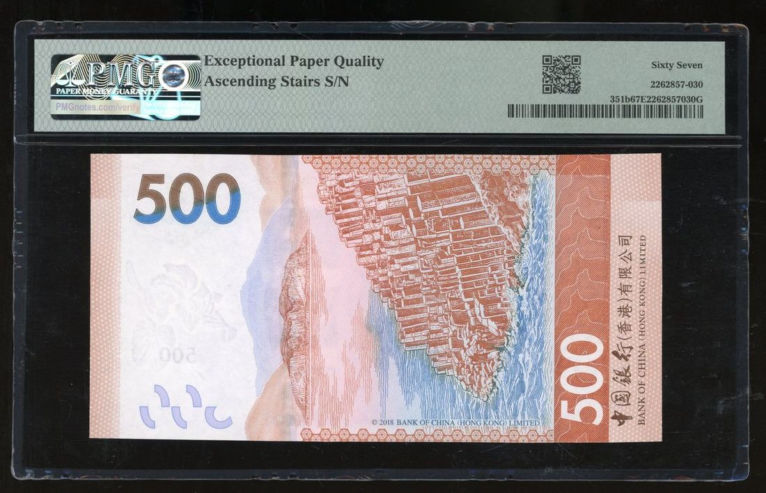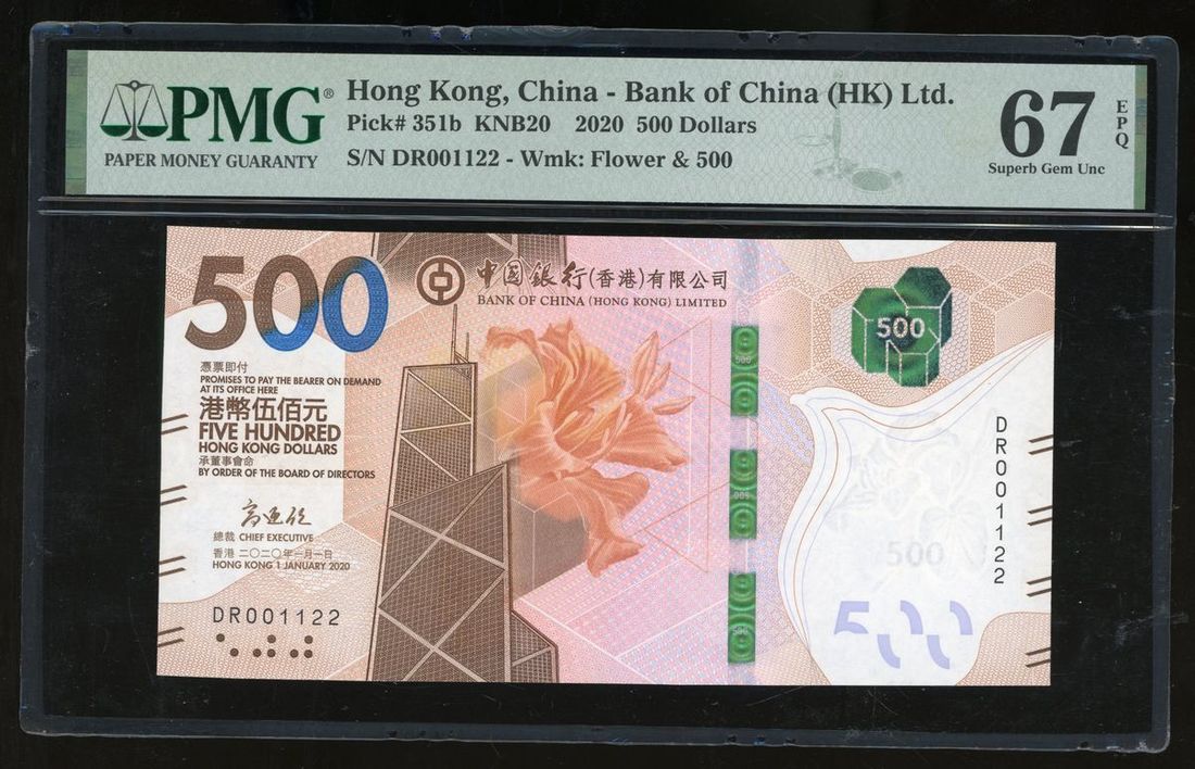 Bank of China, Hong Kong, $500, 1.1.2020, ascending ladder serial number DR 001122, (Pick 351b), PMG 67EPQ