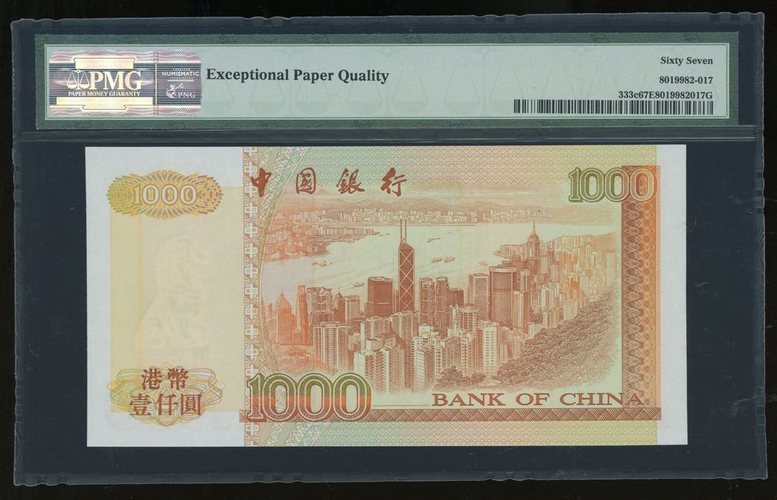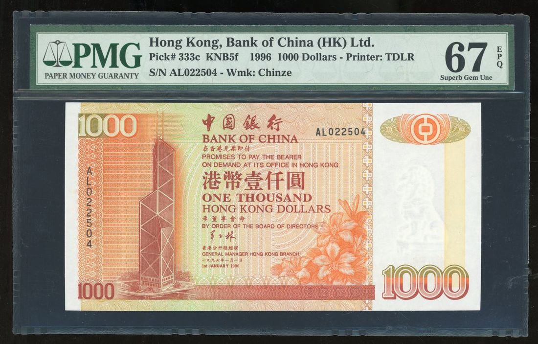Bank of China, Hong Kong, $1000, 1.1.1996, serial number AL 022504, (Pick 333c), PMG 67EPQ