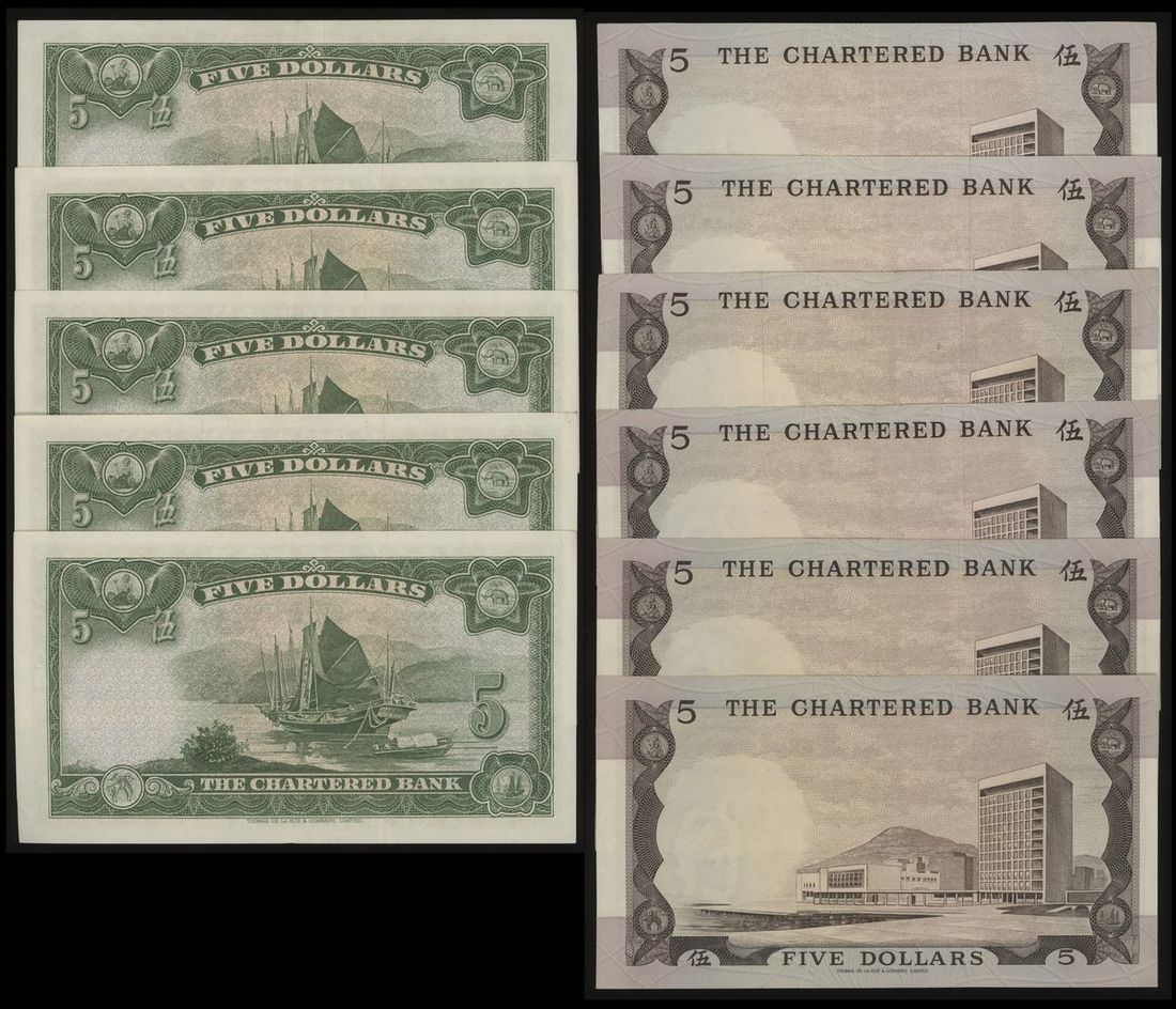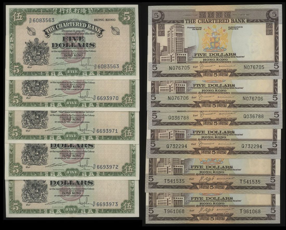 The Chartered Bank, Hong Kong, a group of 11x $5, consisting of ND(1962-70) and ND(1970-75) issues, serial number S/F6083563, S/F6693970-73, N076705-6, Q036788, Q732294, T541535, T961068,