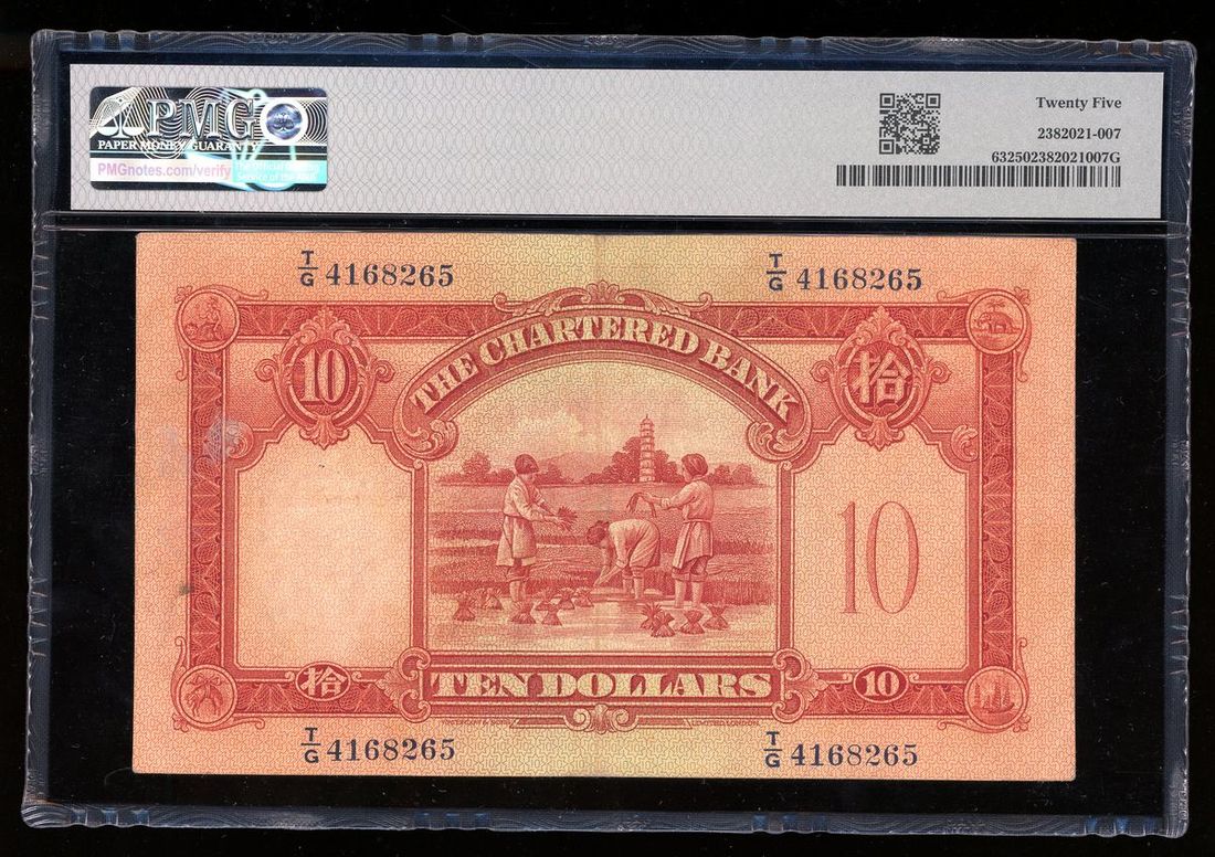 1956年渣打銀行拾圓,編號 T/G 4168265, PMG 25