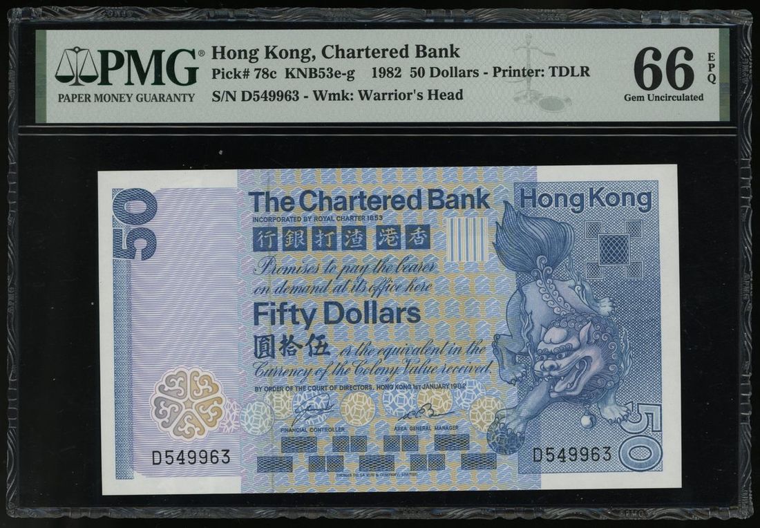 Chartered Bank, Hong Kong, $50, 1.1.1982, serial number D549963, (Pick 78c), PMG 66EPQ