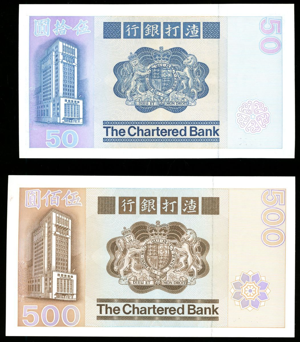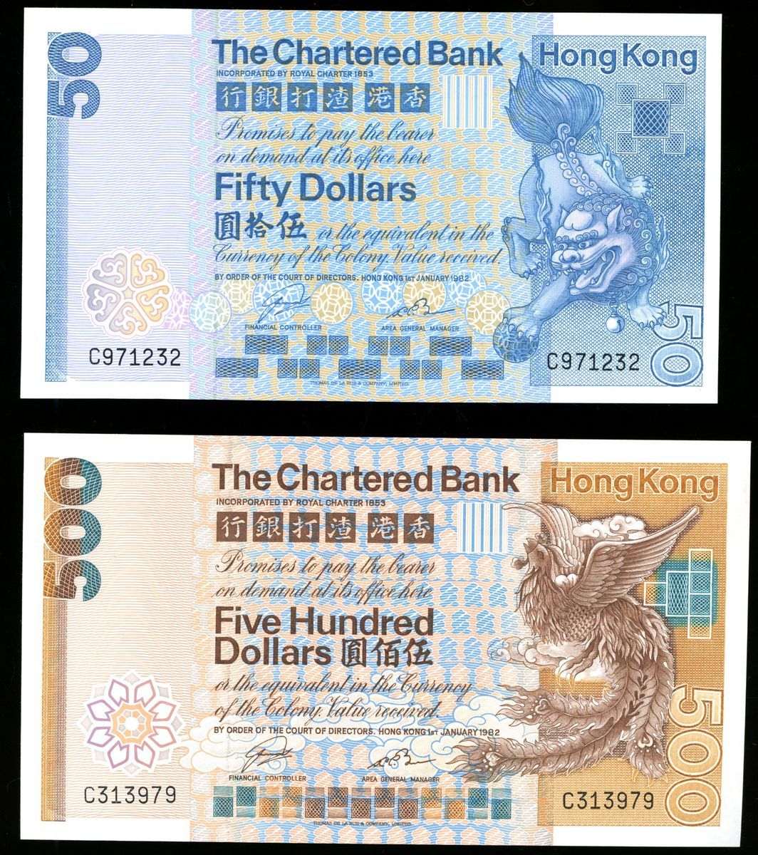 Chartered Bank, Hong Kong, a pair, 1982, including $50 and $500, (Pick 78c, 80b), uncirculated and original extremely fine respectively (2)