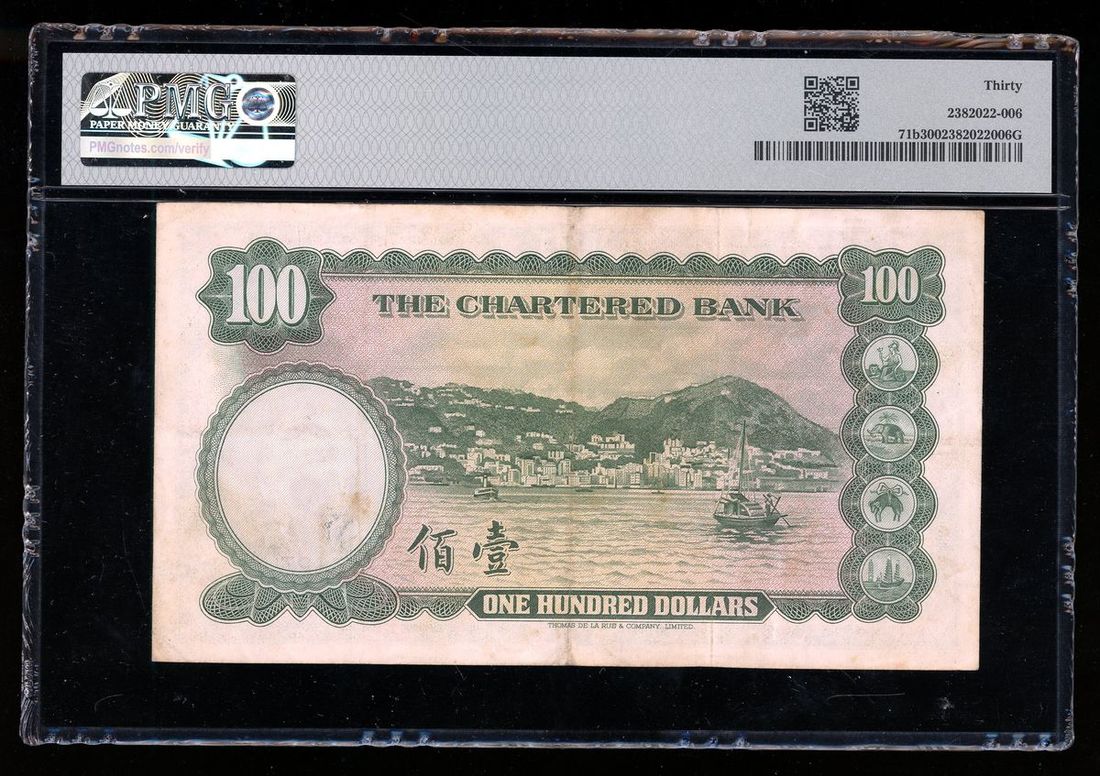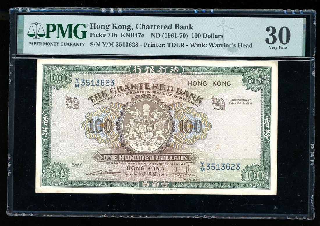 Chartered Bank, Hong Kong, $100, ND (1961-1970), serial number Y/M 3513623, (Pick 71b), PMG 30 Very Fine