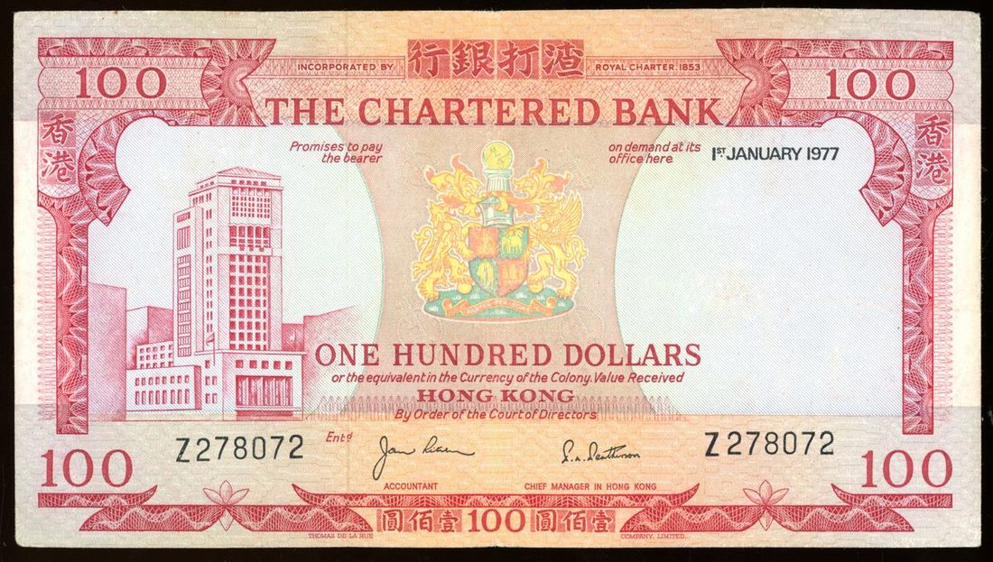 Chartered Bank, Hong Kong, replacement $100, 1.1.1977, serial number Z278072, (Pick 76b*), pressed very fine