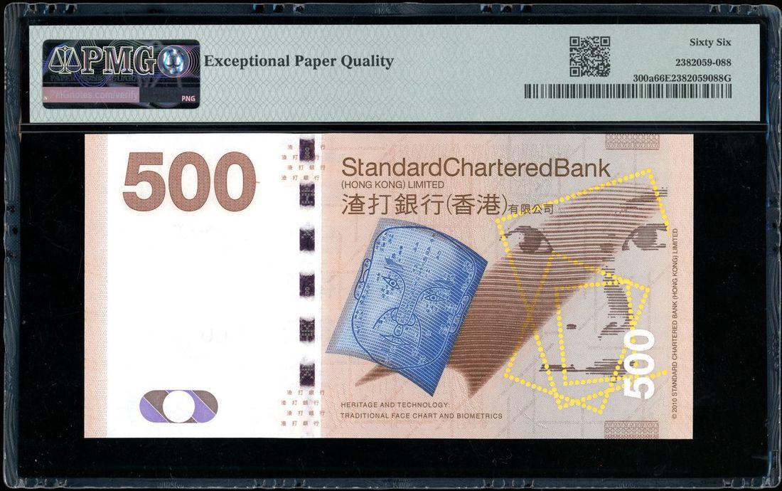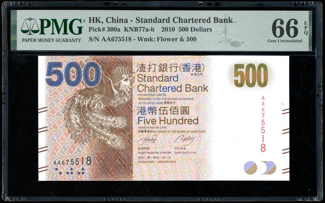 Standard Chartered Bank, Hong Kong, $500, 1.1.2010, serial number AA675518, (Pick 300a), PMG 66EPQ