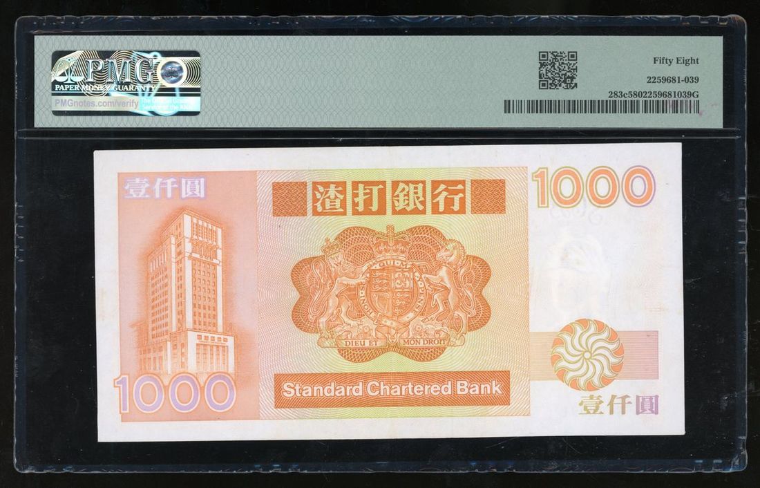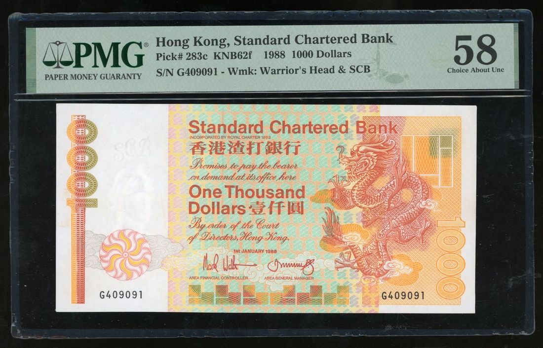 1988年渣打銀行1000元,編號G 409091,PMG 58