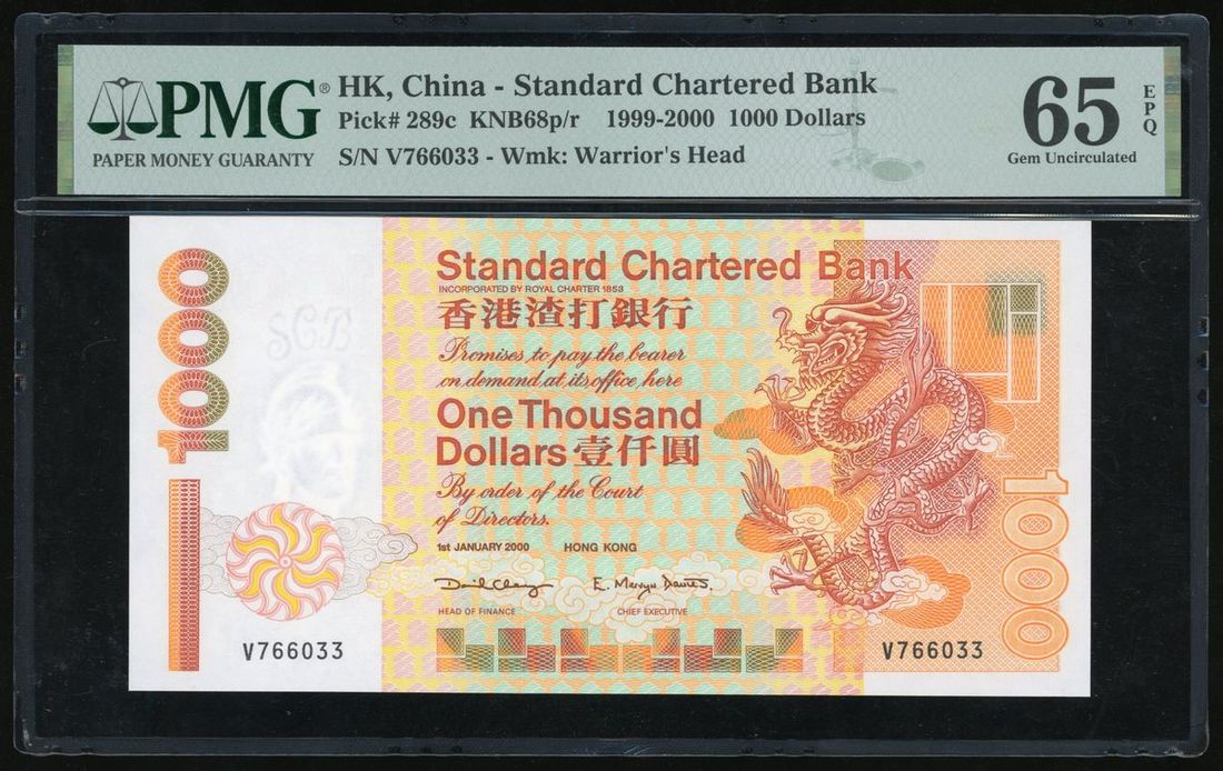 Standard Chartered Bank, Hong Kong, $1000, 1.1.2000, serial number V766033, (Pick 289c), PMG 65EPQ