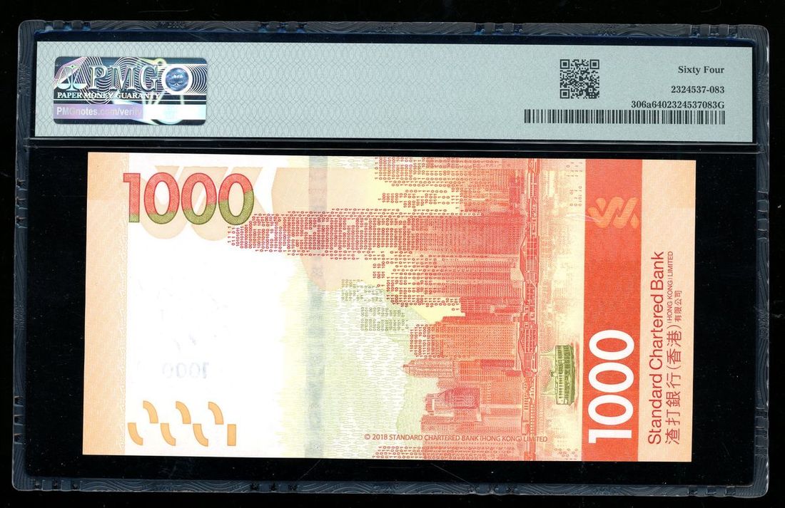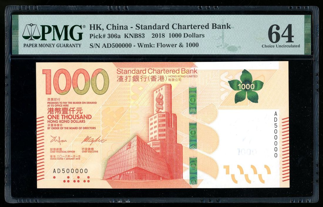 Standard Chartered Bank, Hong Kong, $1000, 2018, fancy serial number AD500000, (Pick 306a), PMG 64.