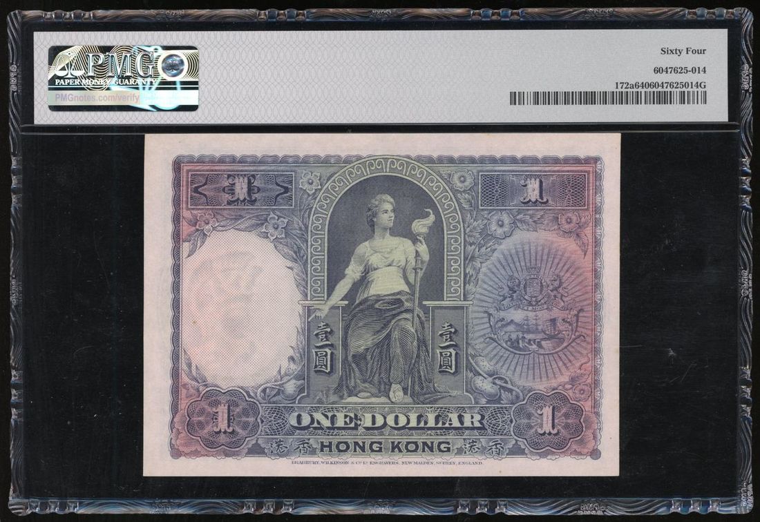 1926年匯豐銀行壹圓,編號D082946,PMG 64,此系列首發年份,高分好品,有輕微氧化點,PMG僅有13枚更高評分