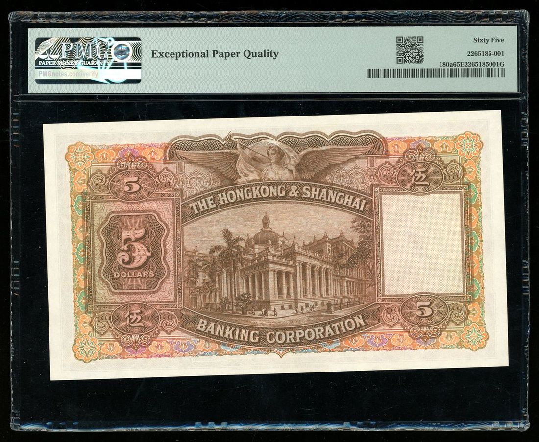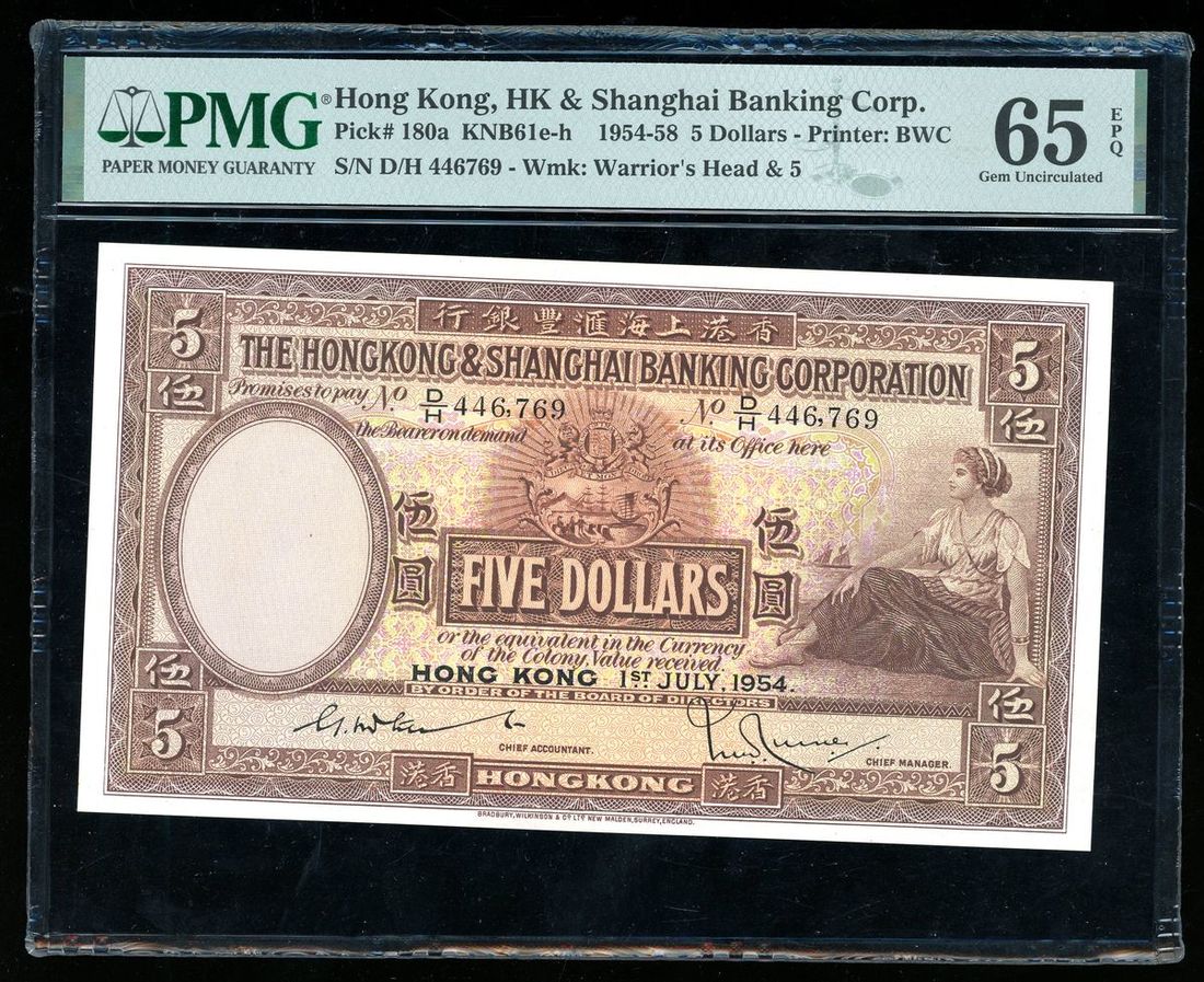 HongKong & Shanghai Banking Corporation, $5, 1.7.1954, serial number D/H 446,769, (Pick 180a), PMG 65EPQ