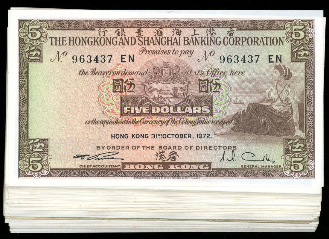 HongKong & Shanghai Banking Corporation, $5 (57), 1971-75, various dates and prefixes, various conditions (57)