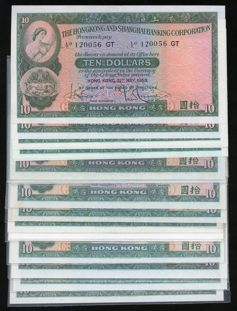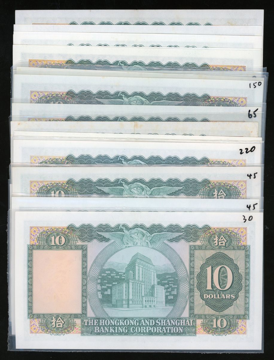 HongKong & Shanghai Banking Corporation, a near complete year set $10 (20), missing 1960, 1971, (Pick 182), about uncirculated or better (20)