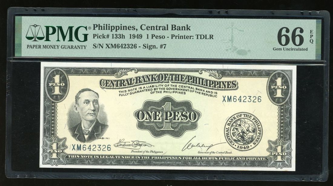 1 Peso, 1949, serial number XM642326, (Pick 133h), PMG 66EPQ