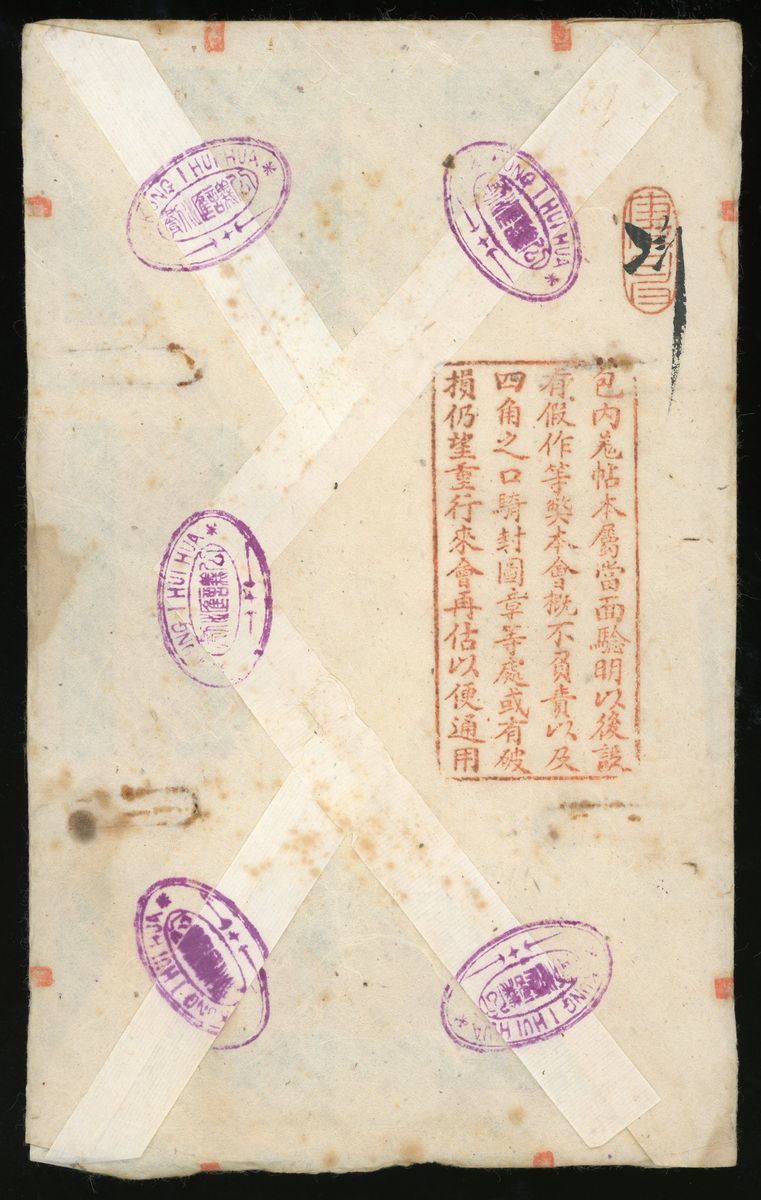 China, a wrapped 5x1000 rubles, 1917, circulated in Northeast province in China by private bank 'Kung I Hui Hua', original paper wrapped with multiple seals, uncirculated, rare seen.