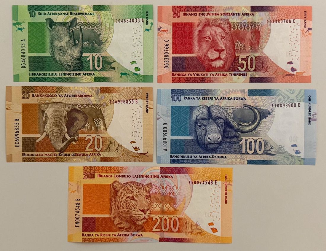 South African Reserve Bank, a set of the 2013-15 issues, including 10, 20, 50, 100 and 200 rand, (Pick 138-142), uncirculated (5)