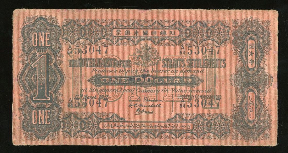 Government of The Straits Settlements, $1, 17.3.1911, serial number A/84 53047, (Pick 1b), Very Fine condition
