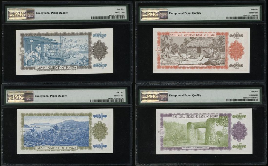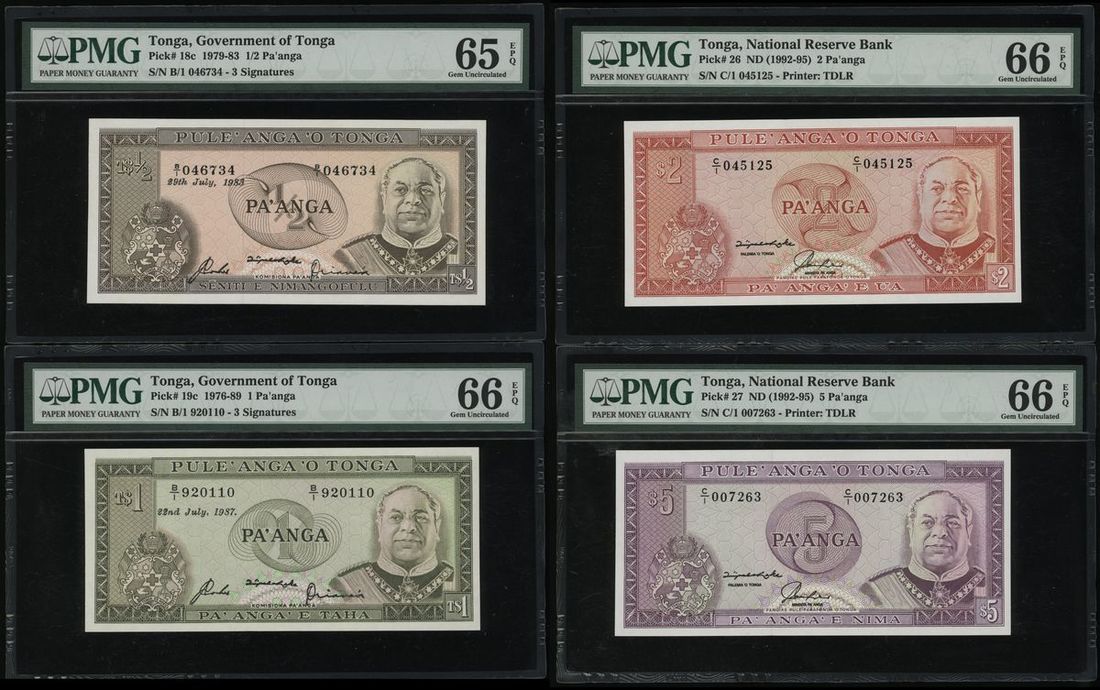 Government of Tonga, a group of 4x, including, 1979-83 1/2 paanga, 1976-89 1 paanga, 1992-95 2 and 5 paanga,