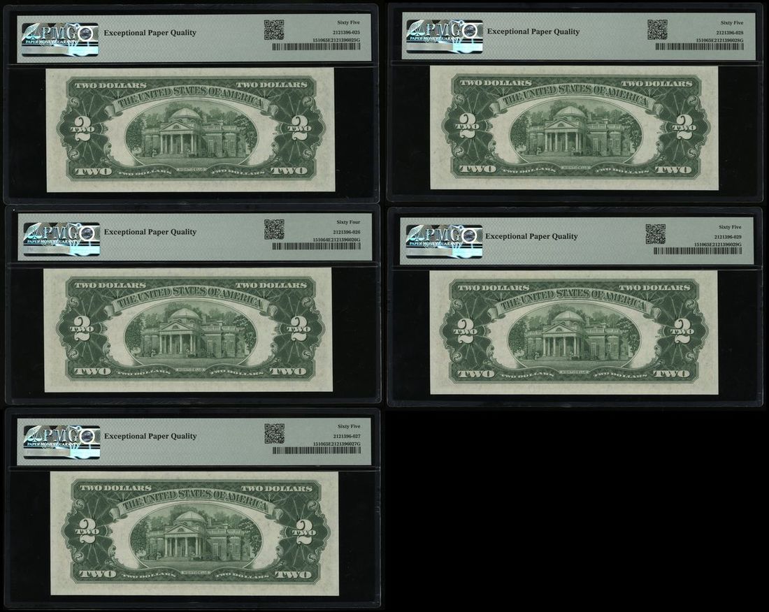 (Friedberg 1510), one graded PMG 64EPQ Choice Uncirculated, the rest 65EPQ Gem Uncirculated (5)