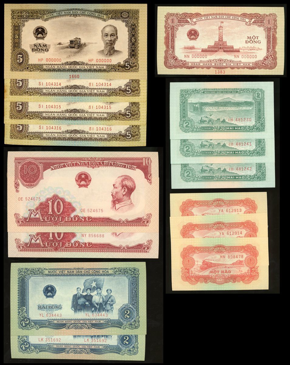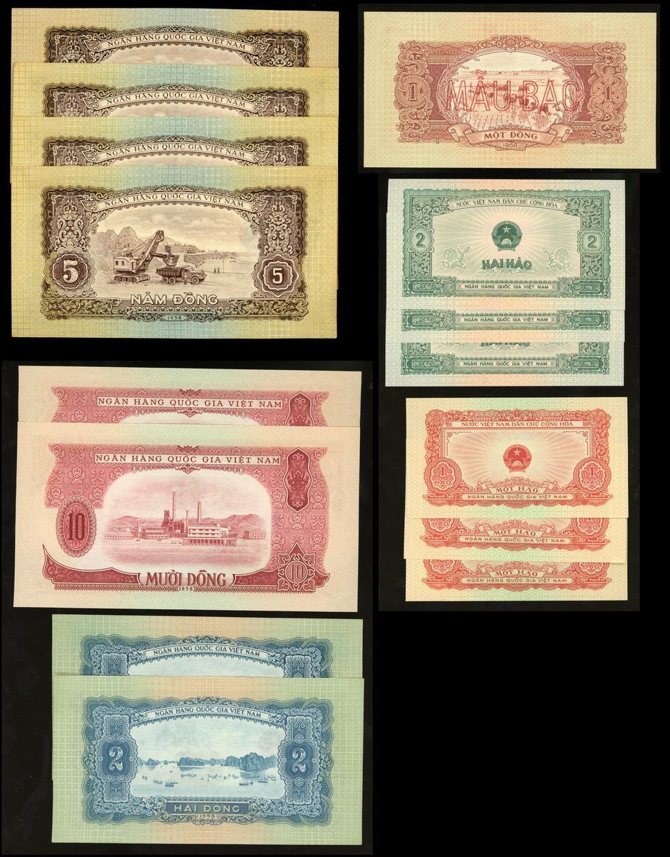 National Bank of Vietnam, a group of 15x 1958 issues, includes, specimen 1 and 5 dong