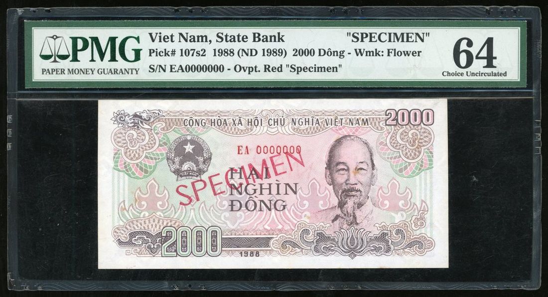 State Bank of Vietnam, specimen 2000 donog, 1988 ND (1989), (Pick 107s2), PMG 64,