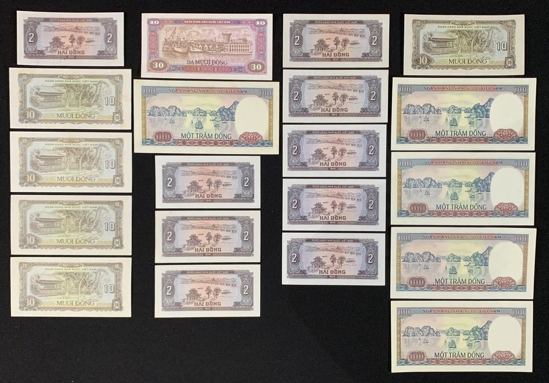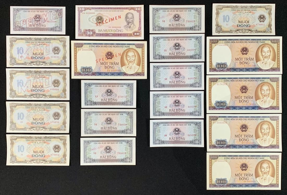 State Bank of Vietnam, a group of 20x, including, -1980-81 issues, specimen 2 dong, specimen 10 dong (2), specimen 30 dong, specimen 100 dong,