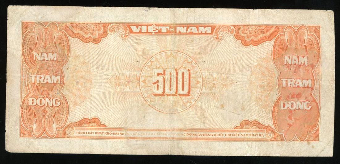 Ngân-Hàng Quoc-Gia Viet-Nam, South Vietnam, 500 dong, ND (1955), serial number G 519236, (Pick 10), Fine